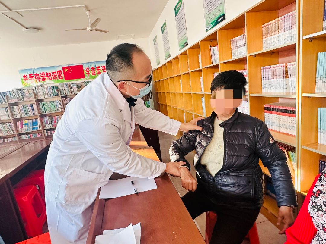 65岁的村民因胳膊疼痛前来咨询,骨科专家现场为其检查、询问病史,详细讲解病因及日常养护要点,并示范康复动作;同时,测血压、问病史等基础健康服务同步开展,让村民在家门口就能享受优质医疗资源。“以前看病要往市里跑,排队挂号折腾大半天,现在专家直接到村头,省时又省心。” 参与义诊的村民对便民服务给予充分认可。